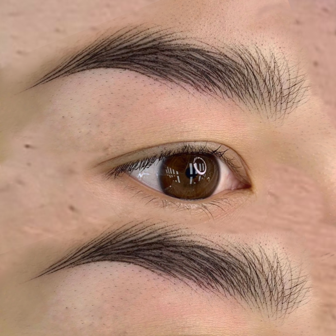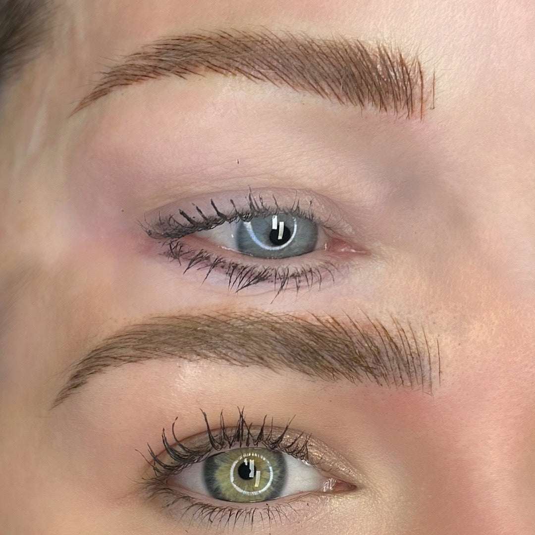 This technique combines microblading and powder to achieve realistic and natural-looking results. It is ideal for individuals with sparse or no brow hair. A soft powder brow is created using a light shade for a base and definition, while slightly darker hairstrokes add depth and realism. It's perfect for those seeking hairstrokes with increased definition and longevity. Results can last up to two years, with an 8-week touch-up recommended.